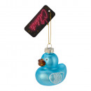 Üvegből készült, arany szálon függeszthető, gumikacsa alakú dísz 6 különböző színben: rózsaszín, sárga, narancssárga, zöld, lila és kék.