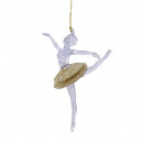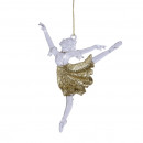 Műanyag, függeszthető, arany glitteres kiegészítőkkel díszített balerina figura 3 különböző modellben.