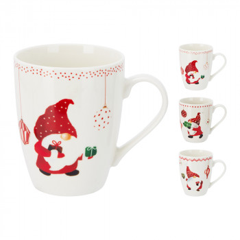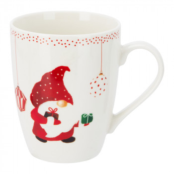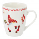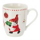 Porcelánból készült, fehér alapon, manó mintás bögre 3 különböző mintával: csillagos, csíkos és pöttyös.