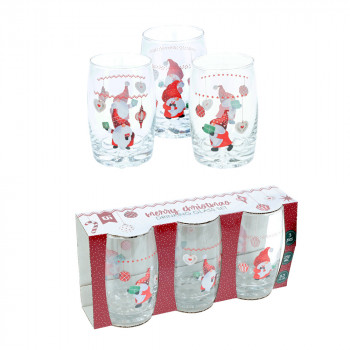 A szett tartalma: 3 különböző karácsonyi mintás pohár manókkal díszítve.