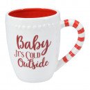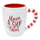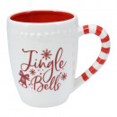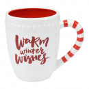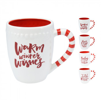 Kerámiából készült, fehér alapon, piros felirattal díszített bögre,csíkos fogantyúval, 4 különböző mintában.