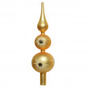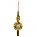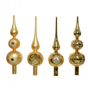 Üvegből készült, fényes vagy matt felületű, csillogó mintával díszített arany csúcsdísz , 4 különböző modellben.