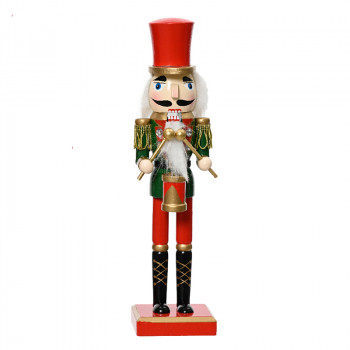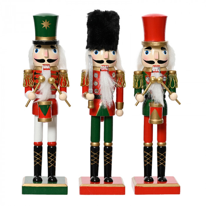 Újrahasznosított fából készült, elegáns elemekkel díszített diótörő figura klasszikus színekben, 3 különböző modellben.