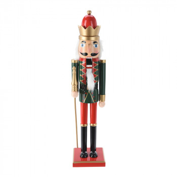 Fából készült, elegáns, arany mintákkal díszített diótörő figura klasszikus színekben, 4 különböző modellben: jogar, zászló, kard és bot.