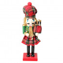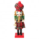 Fából készült diótörő figura skót kockás öltözékben, klasszikus színekben, 4 különböző modellben: dudás, dobos, trombitás és cintányéros.
