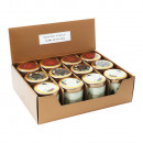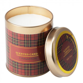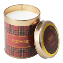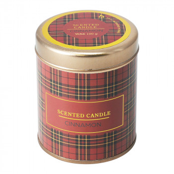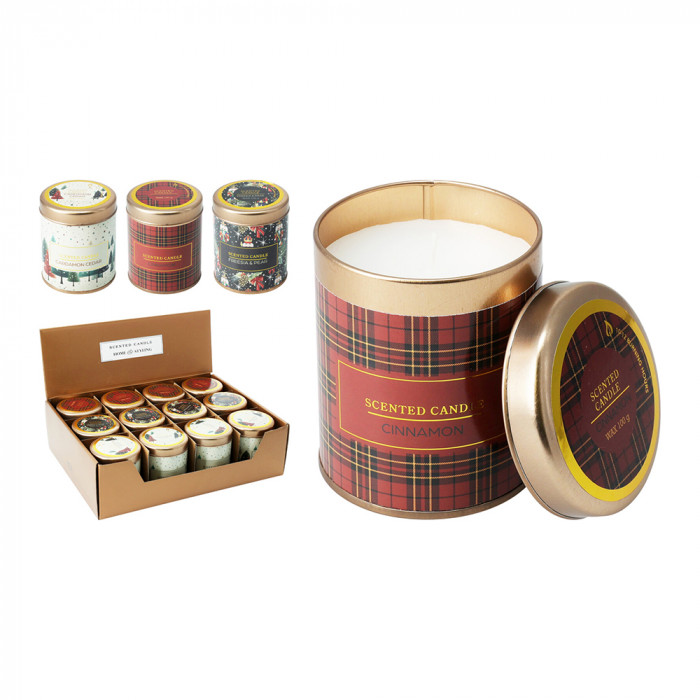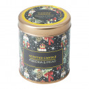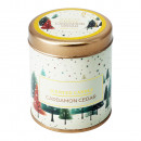 Fém tégelyben tárolt, fedeles illatgyertya karácsonyi mintával és 3 különböző illatban: fahéj, frézia és körte, kardamom és cédrus.