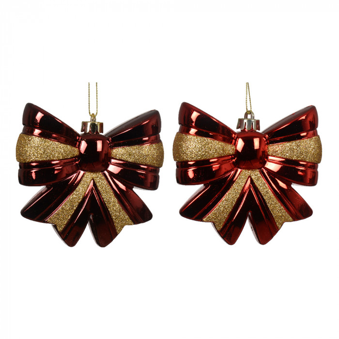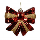 Műanyagból készült, függeszthető, csillogó elemekkel díszített, masni alakú dísz 2 különböző színben: piros és bordó.