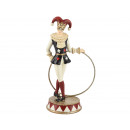 Polireziből készült, csillogó elemekkel, gyöngyökkel és kártya színekkel díszített harlekin fiú figura, dekorációs célokra.