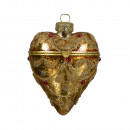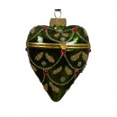 Üvegből készült, függeszthető, díszes, nyitható szív alakú dísz, 3 különböző színben: arany, zöld és bordó.