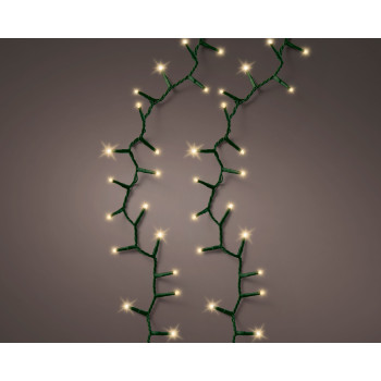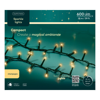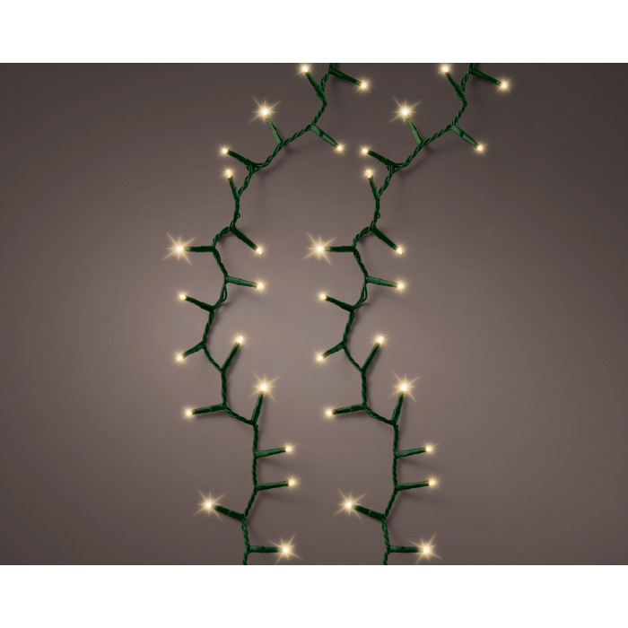 Compact típusú izzósor "puha arany" (meleg fehér) színű ledekkel, zöld kábellel, különleges csillogó effektussal és 8 órás időzítővel.