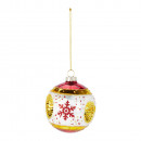 Üvegből készült, függeszthető, reflexes gömb retro mintával, 3 különböző színben: fehér, zöld és piros.