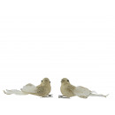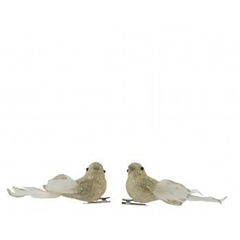 Foam testű, tollakkal díszített, arany színű, csillogó felülettel borított csipeszes madár figura 2 darabos kiszerelésben.
