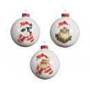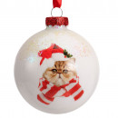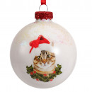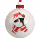Üvegből készült, függeszthető, sapkás és sálas cicával díszített gömb 3 különböző modellben.