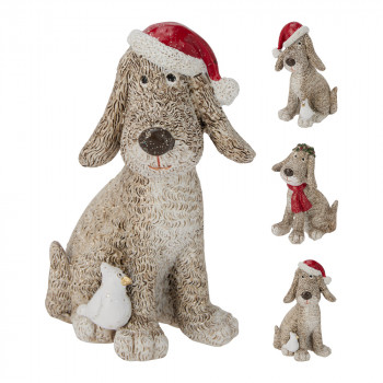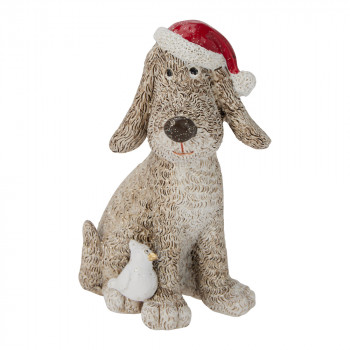 Polirezinből készült, mikulássapkát viselő, vidám, lógó fülű kutya 3 különböző modellben.