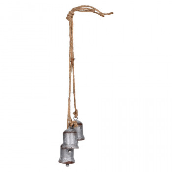 Fémből készült, juta anyagon függesztett harang csokor dekorációs célokra.
