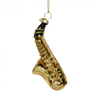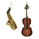 Üvegből készült, függeszthető, hangszer alakú dísz 2 különböző modellben: cselló és szaxofon.