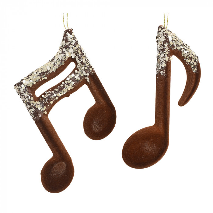 Hungarocellből készült, függeszthető, hangjegy alakú dísz csillámos díszítéssel, 2 különböző modellben.