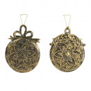 Műanyagból készült, antik arany elemekkel díszített, függeszthető, mackó mintás dísz 2 különböző modellben: mackó elölről és mackó hátulról.