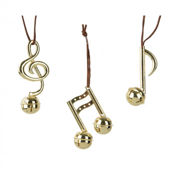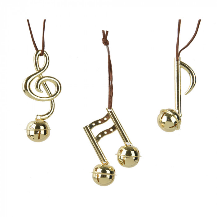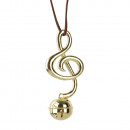 Fémből készült, bőr szalagon függeszthető, arany színű, hangjegy alakú dísz 3 különböző modellben