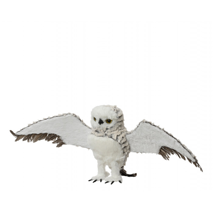 Foam testű, puha plüssös felületű bagoly figura, tollakkal, kitárt szárnnyal.