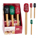 Karácsonyi mintás szilikon spatula fa nyéllel sütéshez,főzéshez, 3 különböző mintával.