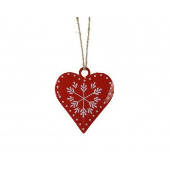 Fémből készült, függeszthető, piros színű, szív alakú dísz.