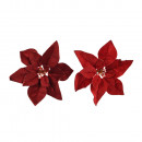Műanyagból készült, csipeszes, bársonyos felületű mikulásvirág dekorációs célokra 2 különböző színben: piros és bordó.
