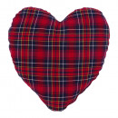 Kockás mintás textilből készült, piros színű, szív alakú díszpárna 2 különböző színben: piros-kék és piros-zöld.