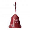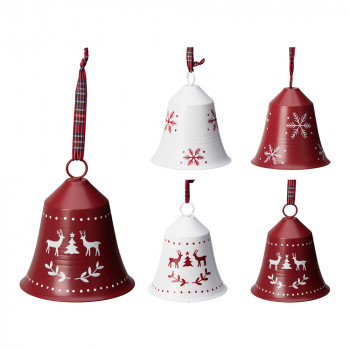 Fémből készült, függeszthető, kockás szalaggal díszített harang dísz 2 különböző színben és mintában.