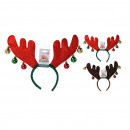 Rénszarvas agancs formájú hajráf 6 darab karácsonyi gömbbel, 2 különböző színben.