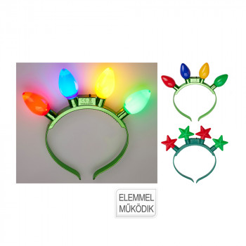 Műanyagból készült, vidám, világító fejdísz 2 különböző modellben, 3 különböző villogó funkcióval.