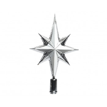 Műanyag, csillag alakú csúcsdísz ezüst színben.
