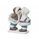 Polirezinből készült, hagyományos öltözékben ábrázolt eszkimó pár dekorációs célokra.