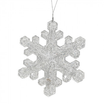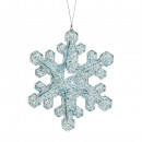 Akrilból készült, függeszthető, domború, hópehely alakú dísz, csillogó felülettel, 2 különböző színben: kék ás ezüst.