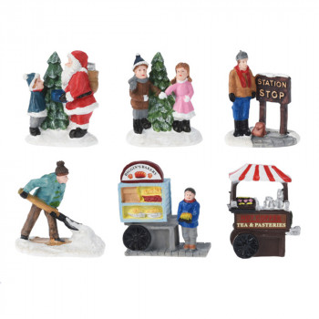 Polirezinből készült, terepasztal kiegészítő figurák, egyesével csomagolva, 6 különböző modellben.