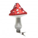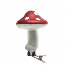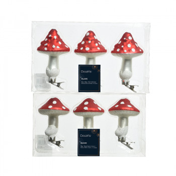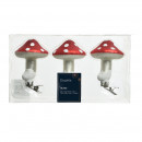 Üvegből készült, csipeszes gomba dísz szett, 3 darabos kiszerelésben 2 különböző modellben: magas és alacsony gomba.