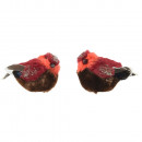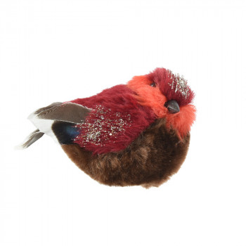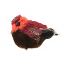 Foam testű, műszőrmével és tollakkal borított, csipeszes madár figura piros színben, 2 különböző modellben.