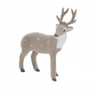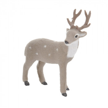 Műanyagból készült szarvas figura, puha flokkolt felülettel, szürke színben, pöttyös mintázattal 2 különböző modellben: előre néző és oldalra néző.