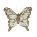 Műanyagból és tollakból készült pezsgő színű, csipeszes pillangó, arany glitterrel és kövekkel díszítve, 3 darabos kiszerelésben.